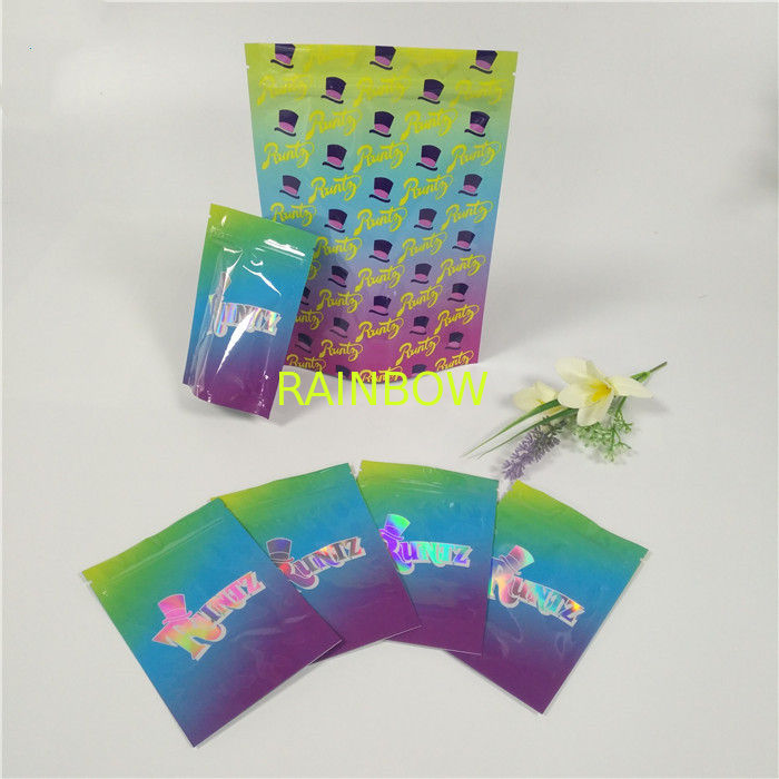 De plastic tribune op de zakken van de zakritssluiting runtz ruikt bewijs mylar zakken in voorraad